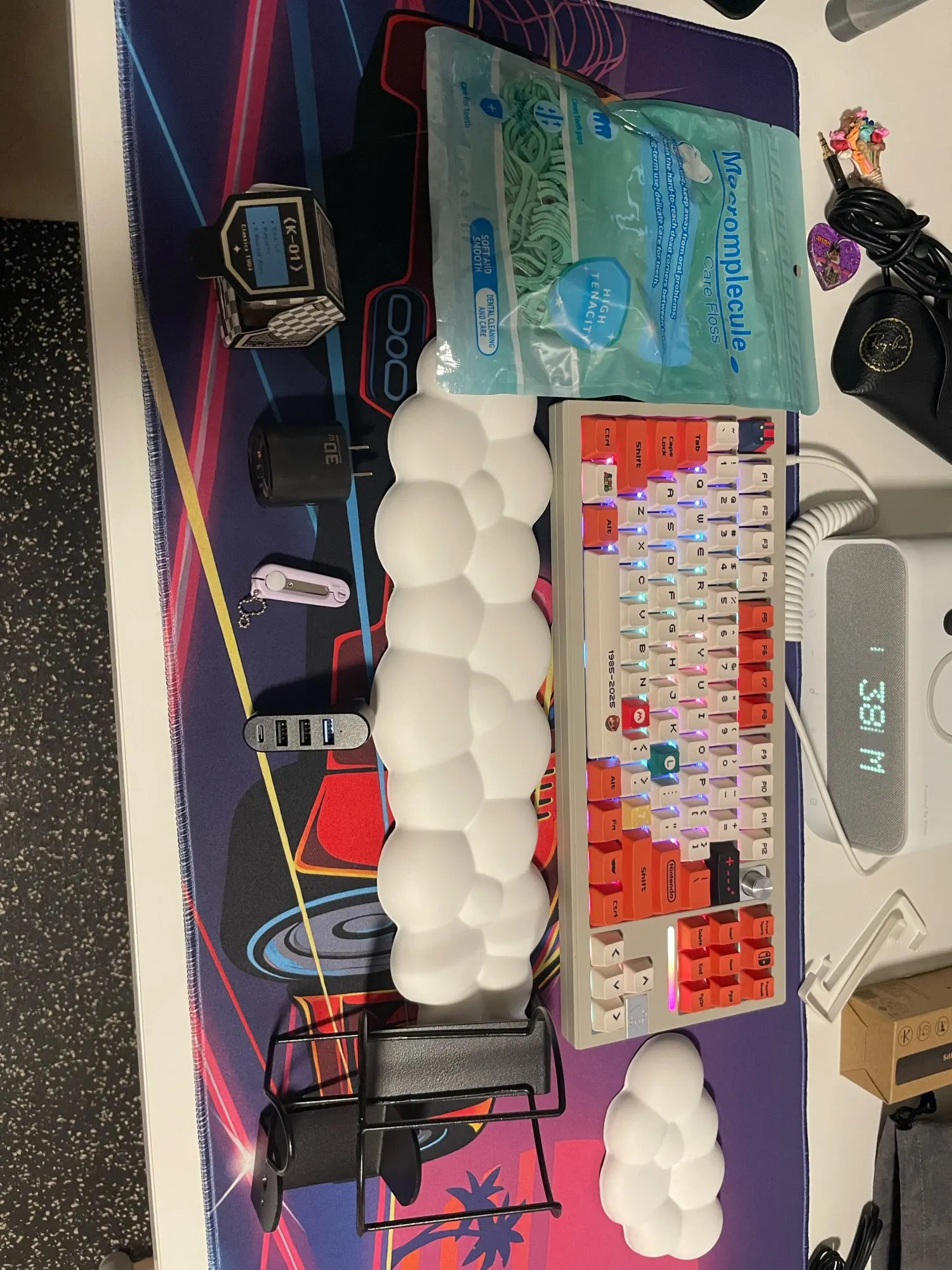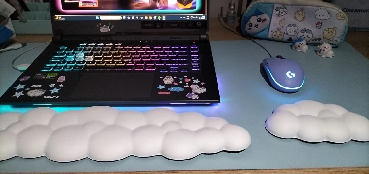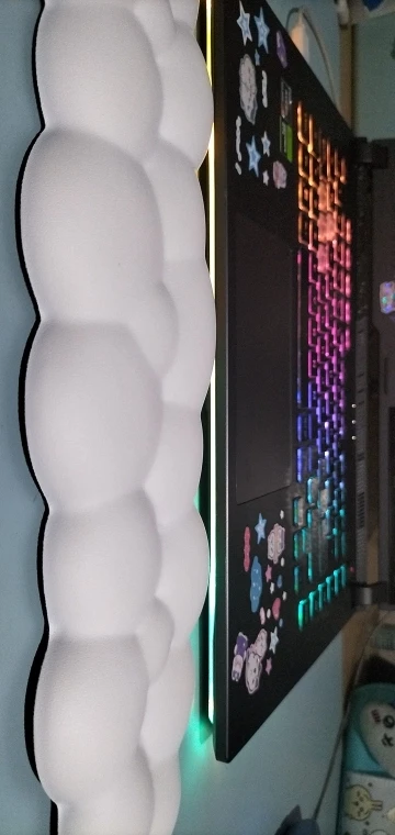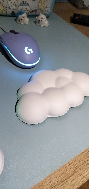 Very good product, it's soft and padded, perfect for long hours of gaming or work. It is made of leather-like material, so it's easy to clean and cool for hot days. It easily returns to its original shape even after keeping the dolls resting on it for a long time, making it look durable. It has a protective plastic on the back for better grip with the mousepad underneath (or the furniture in case it doesn't have a large mousepad underneath). The large cloud is perfectly sized for both small and large keyboards. The small cloud is a bit smaller than I would like, but it still serves its purpose well. Recommended for gamers or girls who seek comfort while being on the PC. (  ̄ ︶  ̄ ) >