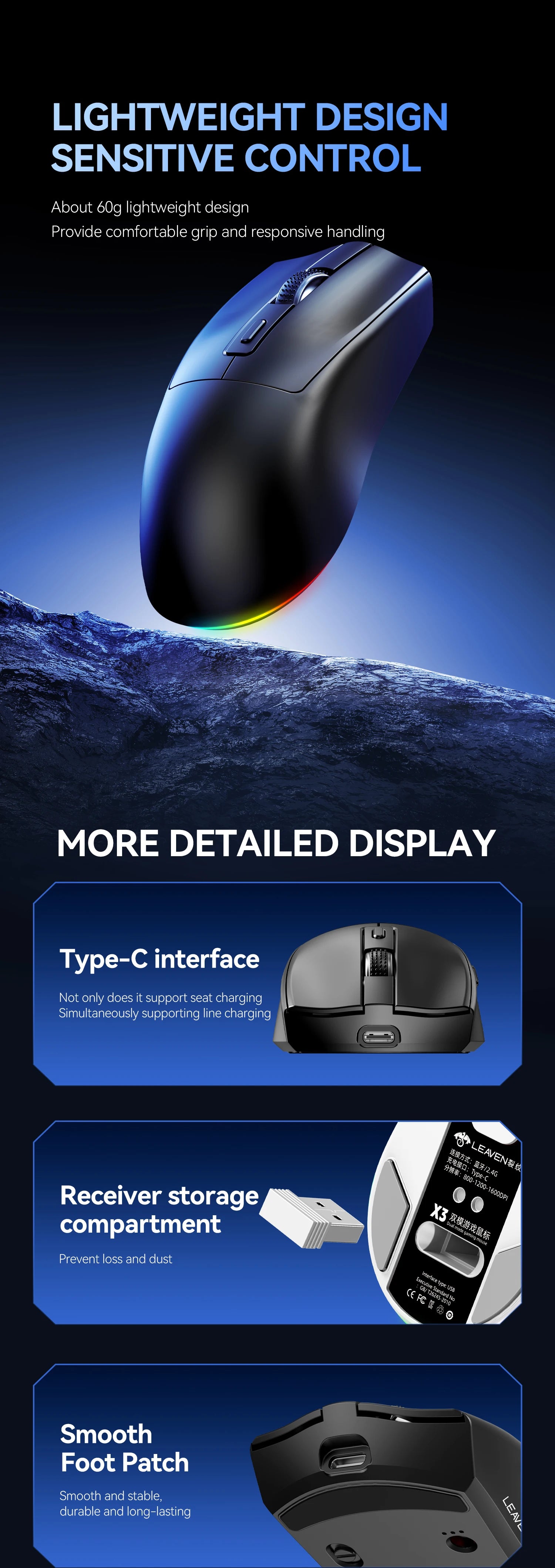 X3 Wireless Gaming Mouse – Précision, Légèreté et Style RGB