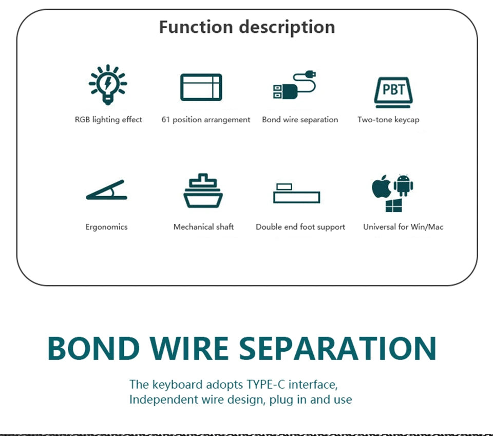 - ⌨️ Format 60% ultra-compact – 61 touches pour un gain d'espace maximal