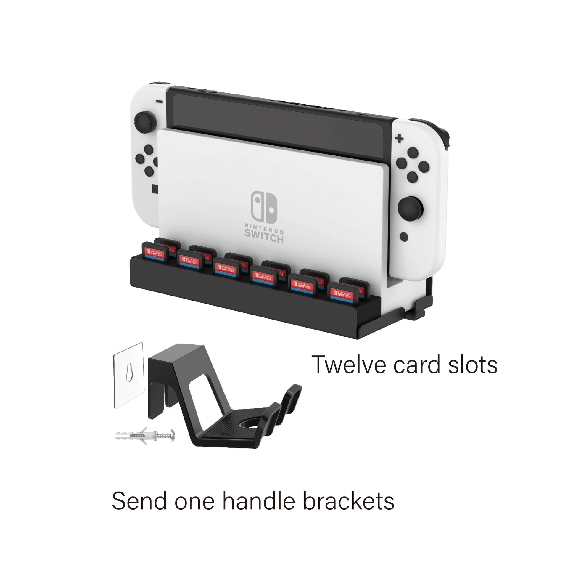 Optimise ton espace gaming avec le support mural pour Nintendo Switch OLED en métal. Ce support gaming multifonction offre 12 emplacements pour cartes de jeu, un crochet pour accessoires et un rangement sécurisé pour ta console près de la TV pour une organisation parfaite et un accès facile.