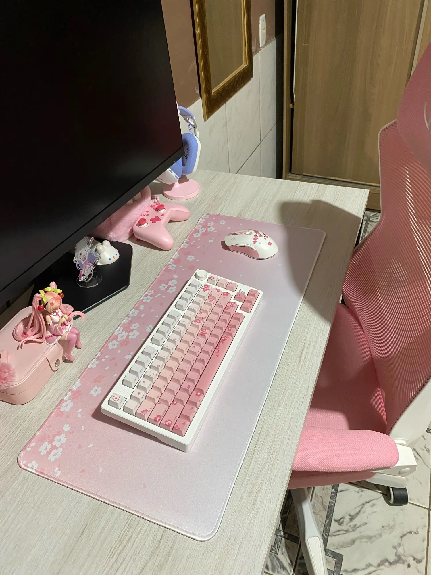 Tapis de Souris XXL Fleurs de Cerisier – Sakura Rose, Antidérapant et Élégant