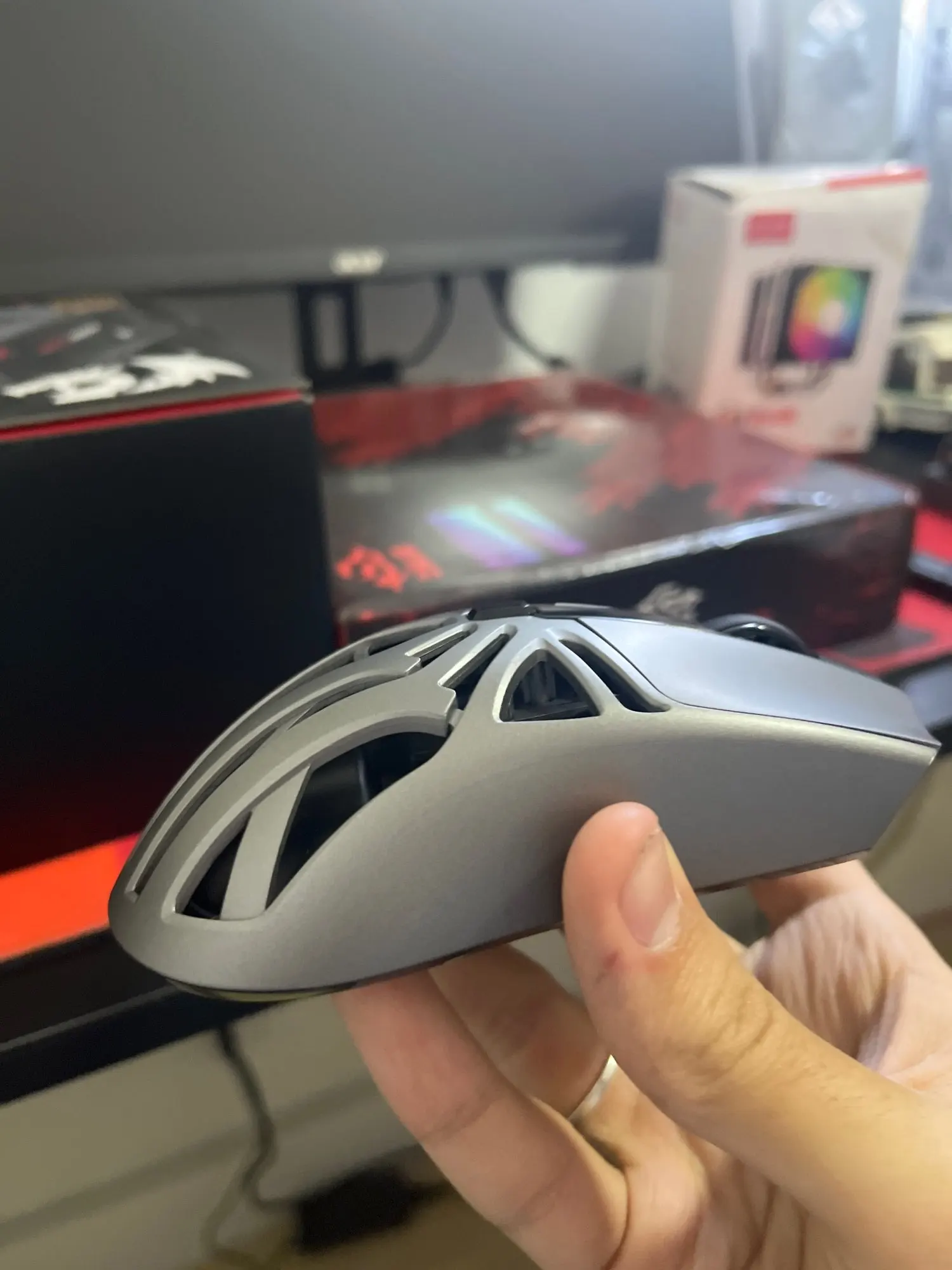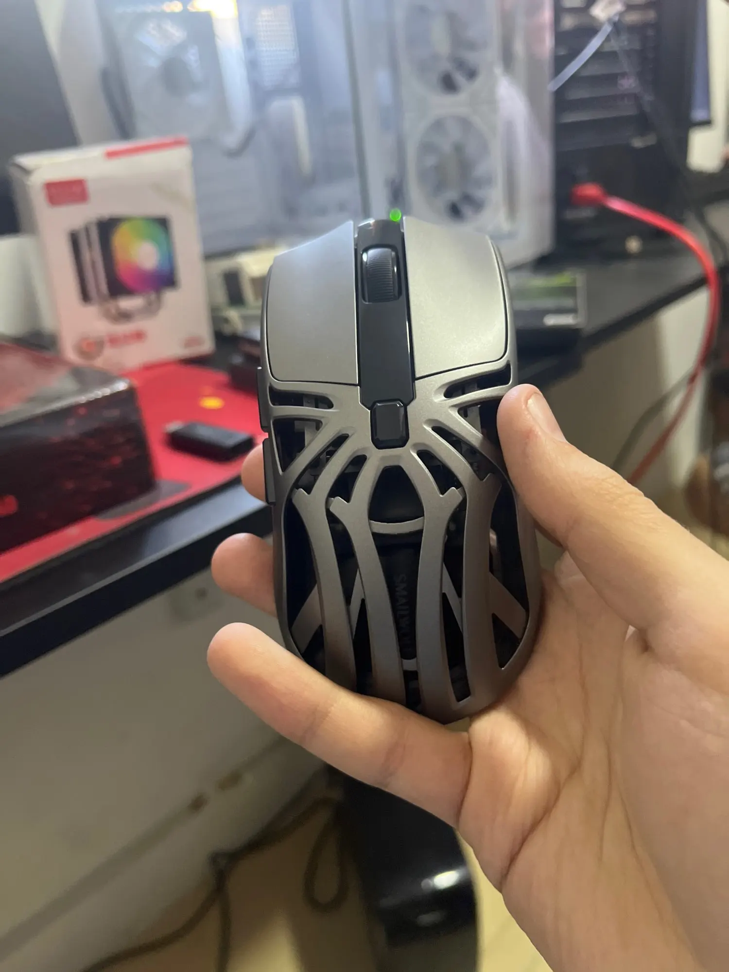 La souris est magnifique ! Le carton est arrivé endommagé, on dirait qu'on l'avait cogné KAKAKAAK, mais la souris fonctionne et il n'y a pas de chips ni de fissures. La construction est bonne et la souris est légère avec un clic fluide.